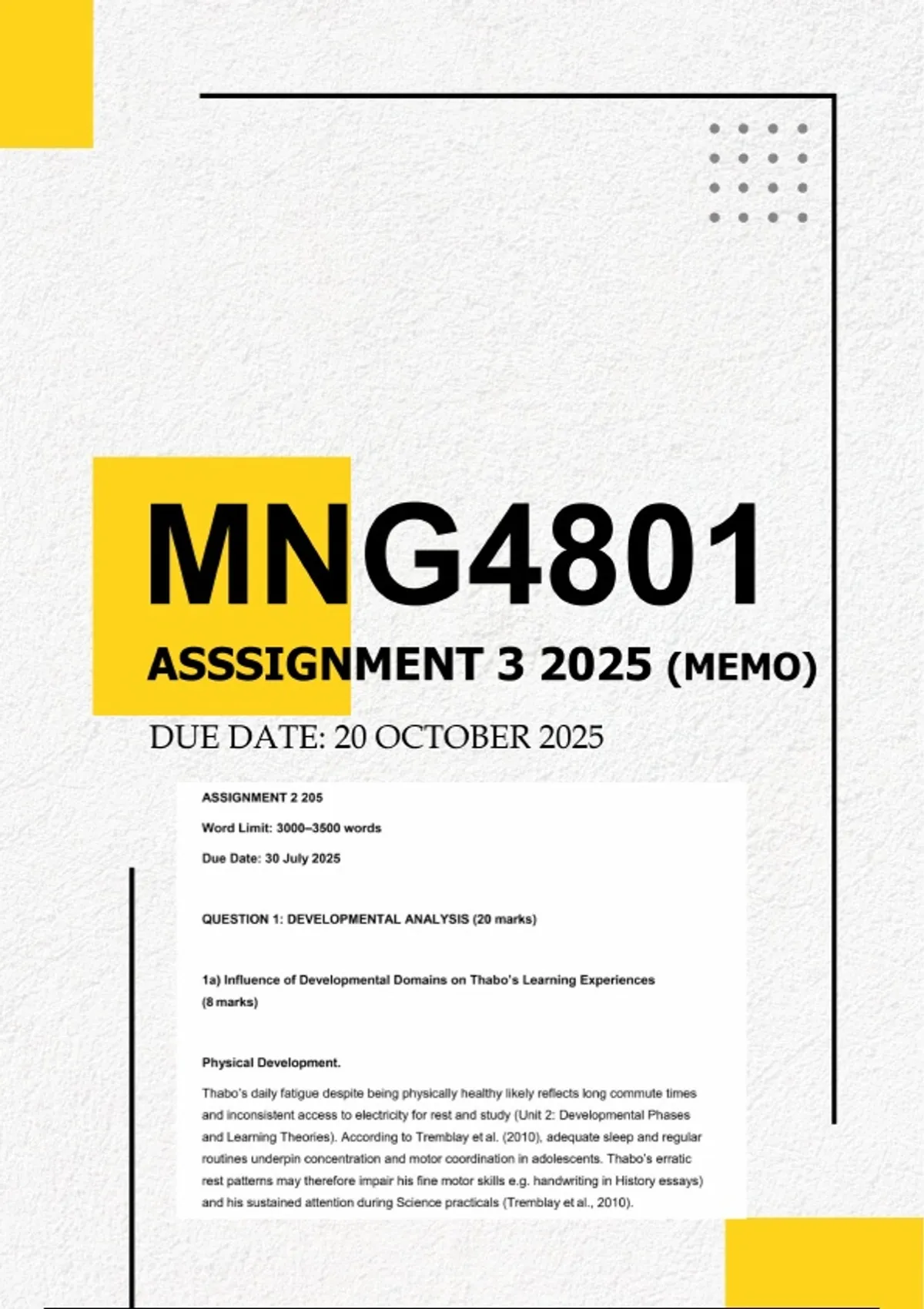 MNG4801 Assignment 3 Semester 2 2025 - Due October 2025