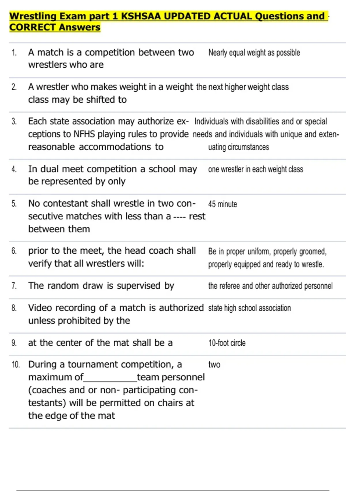 1. A match is a competition between two Nearly equal weight as possible
