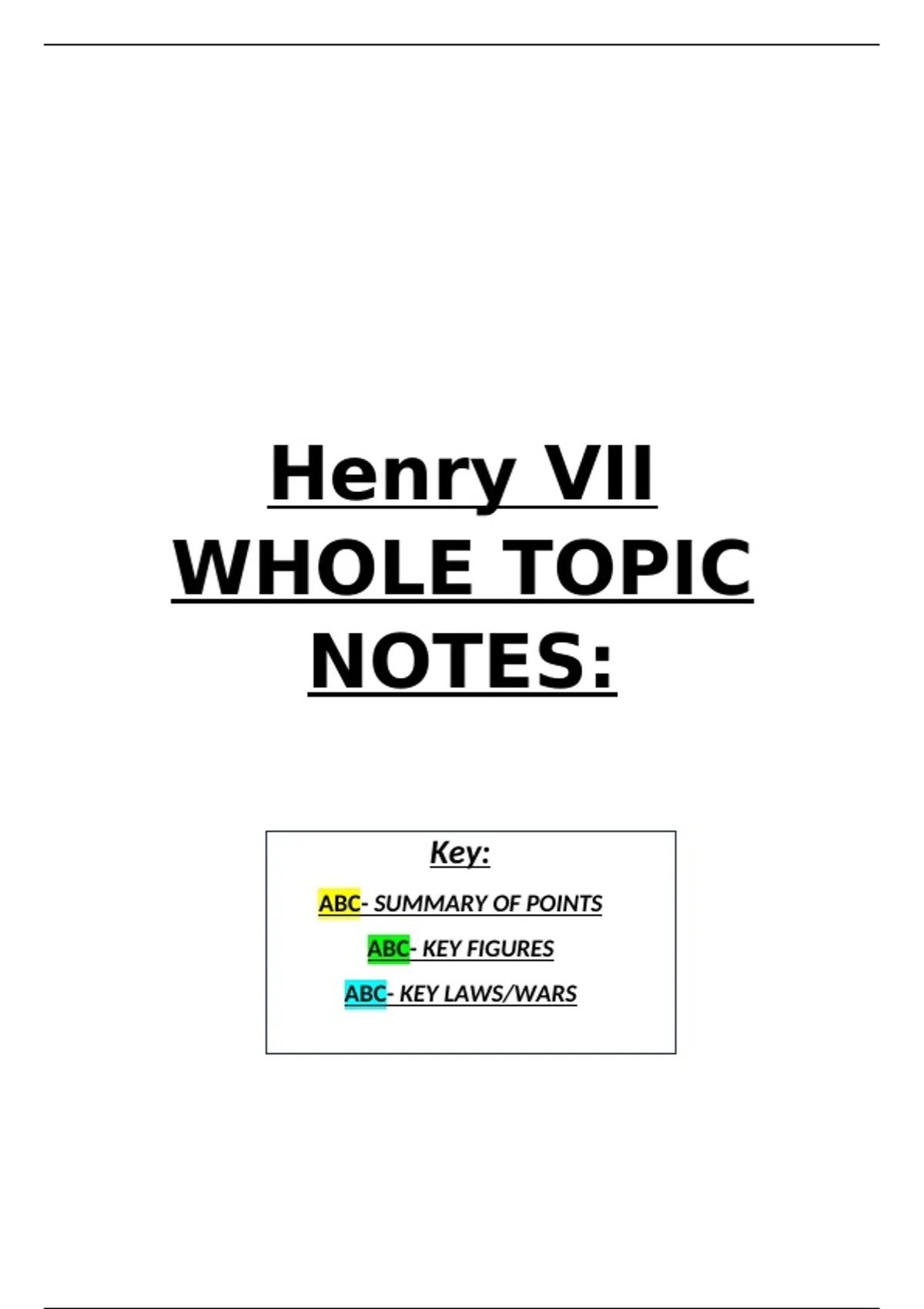 Summary- Henry VII whole topic