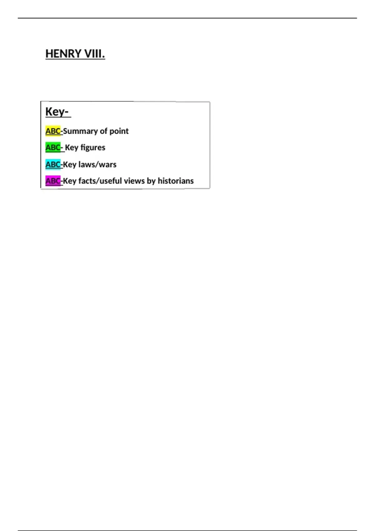 Henry VIII (8th) whole topic notes for AQA A Level History tudors topic. Includes important dates, laws, people of power and key knowledge to get the best grades.