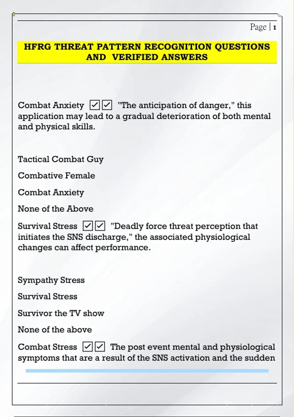 HFRG THREAT PATTERN RECOGNITION QUESTIONS AND VERIFIED ANSWERS