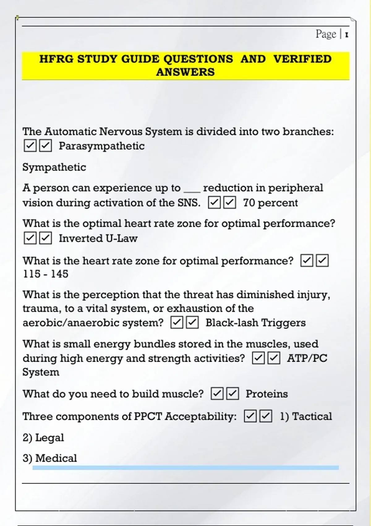 HFRG STUDY GUIDE QUESTIONS AND VERIFIED