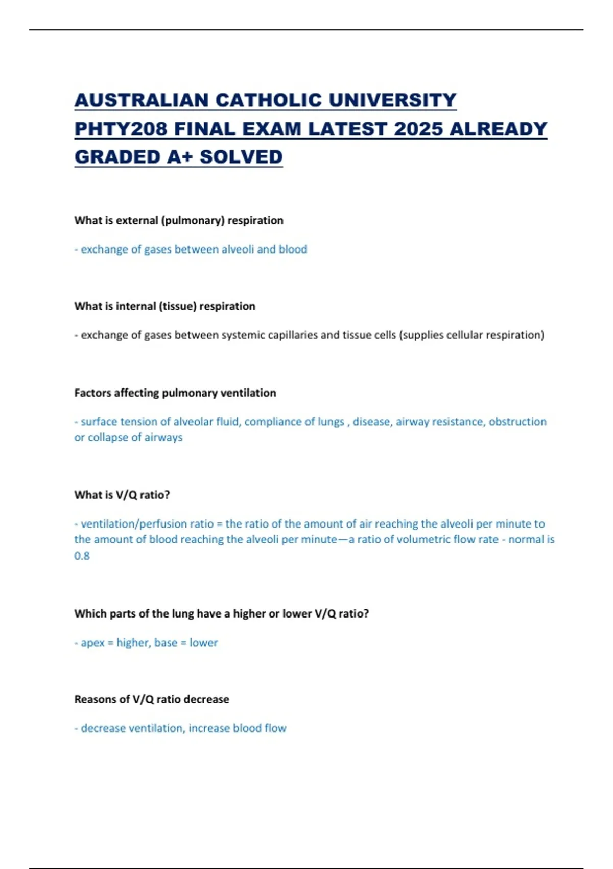 PHTY208 FINAL EXAM LATEST 2025 ALREADY