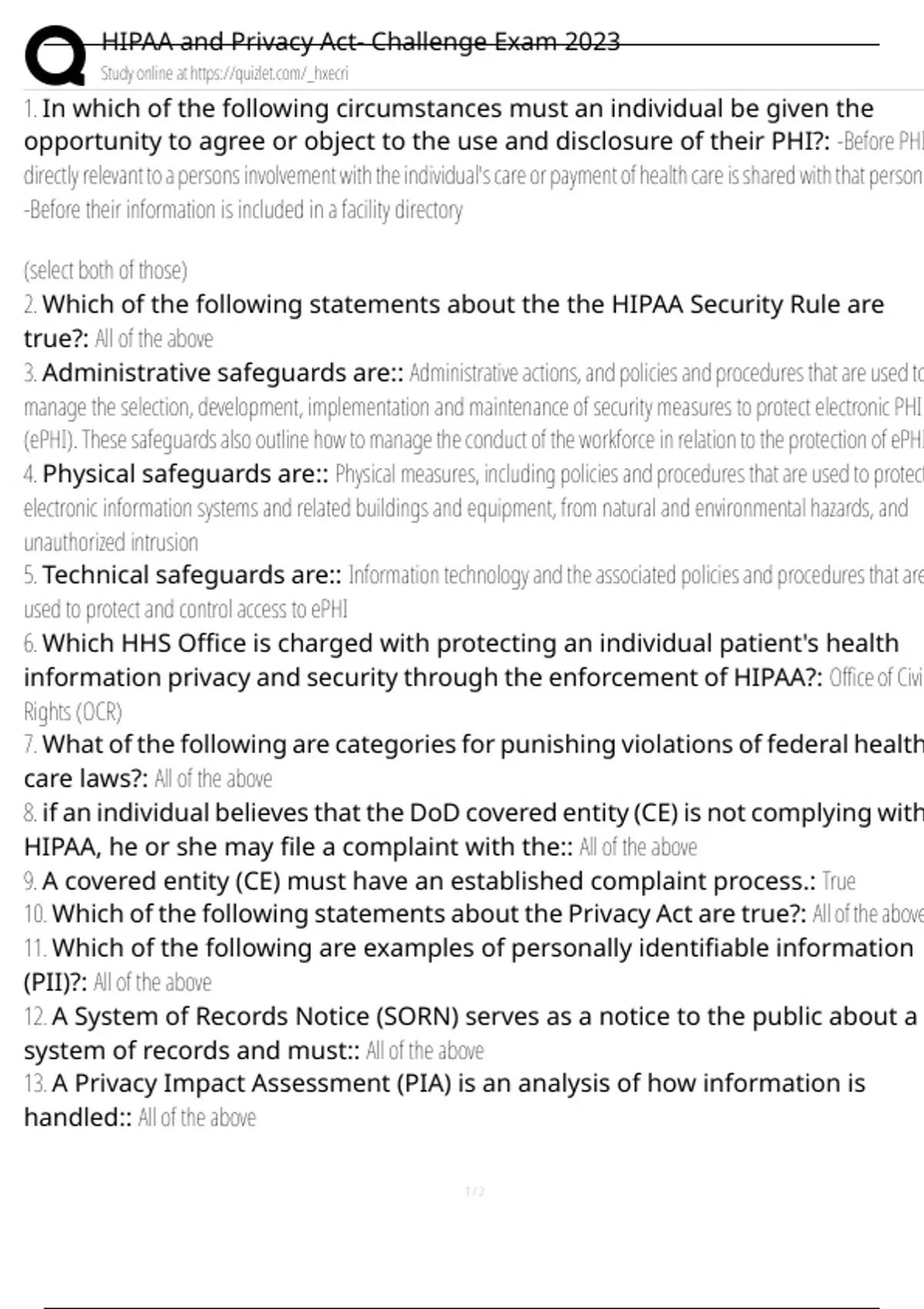 HIPAA and Privacy Act- Challenge Exam 2023