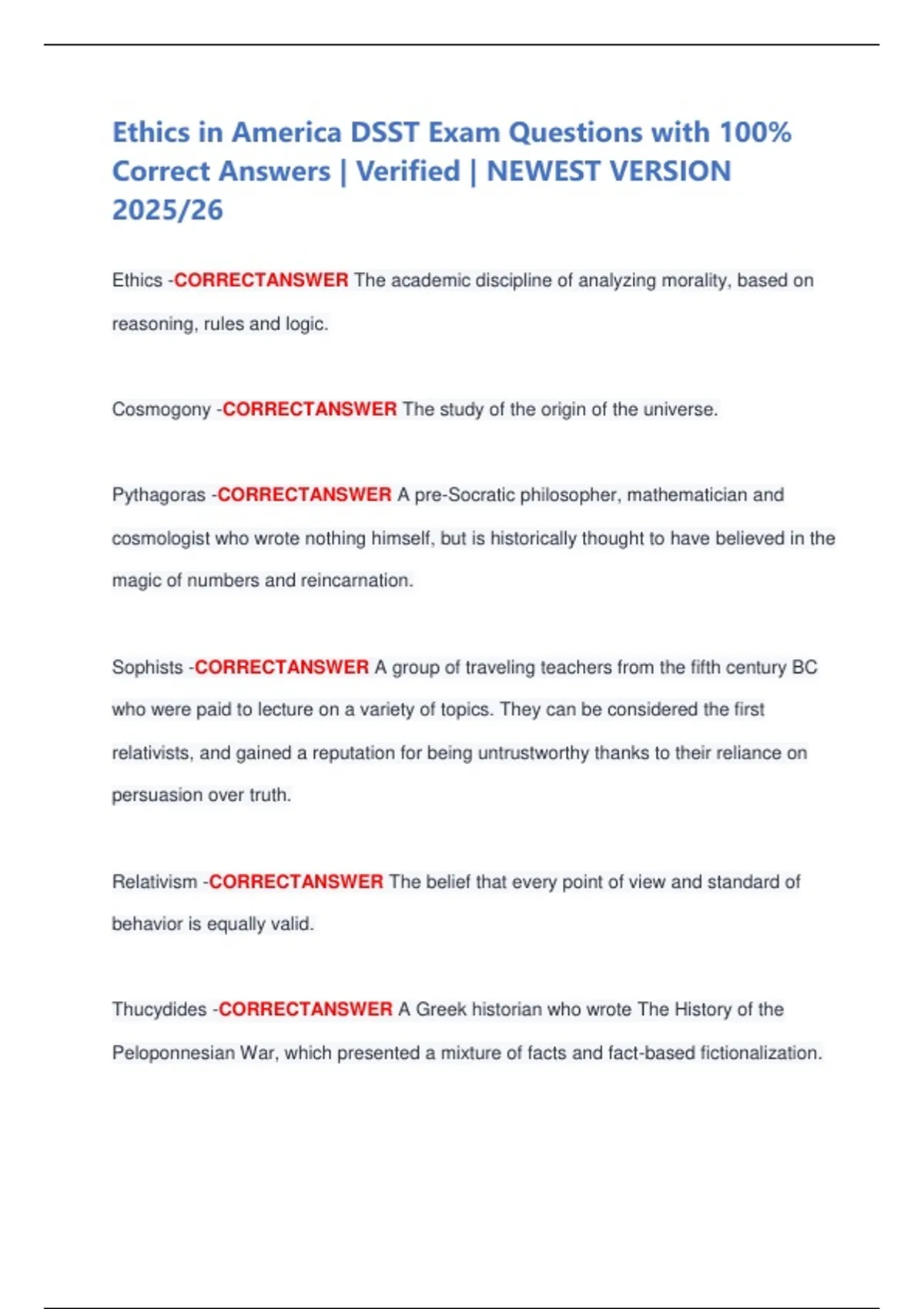 Ethics in America DSST Exam Questions with 100% Correct Answers | Verified | NEWEST VERSION 2025/26