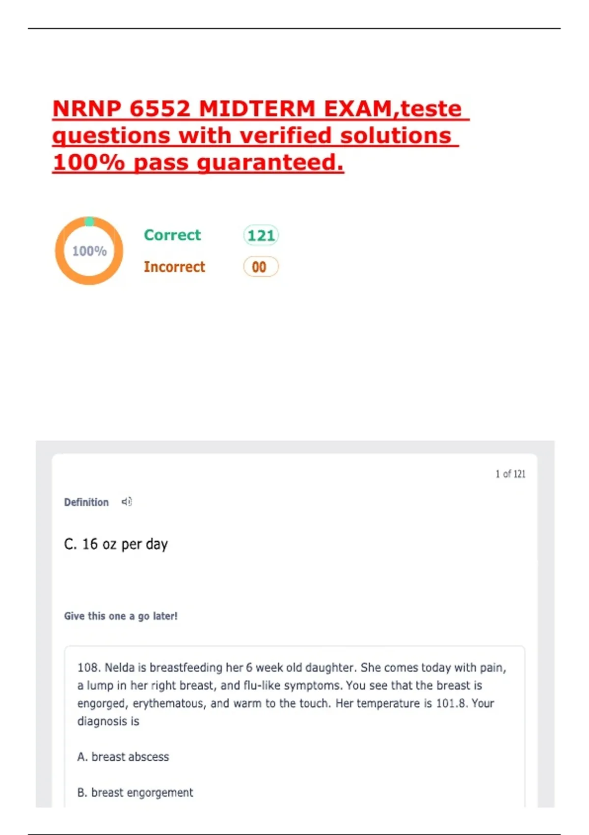 , NRNP 6552 MIDTERM EXAM,teste questions with verified solutions 100% pass
