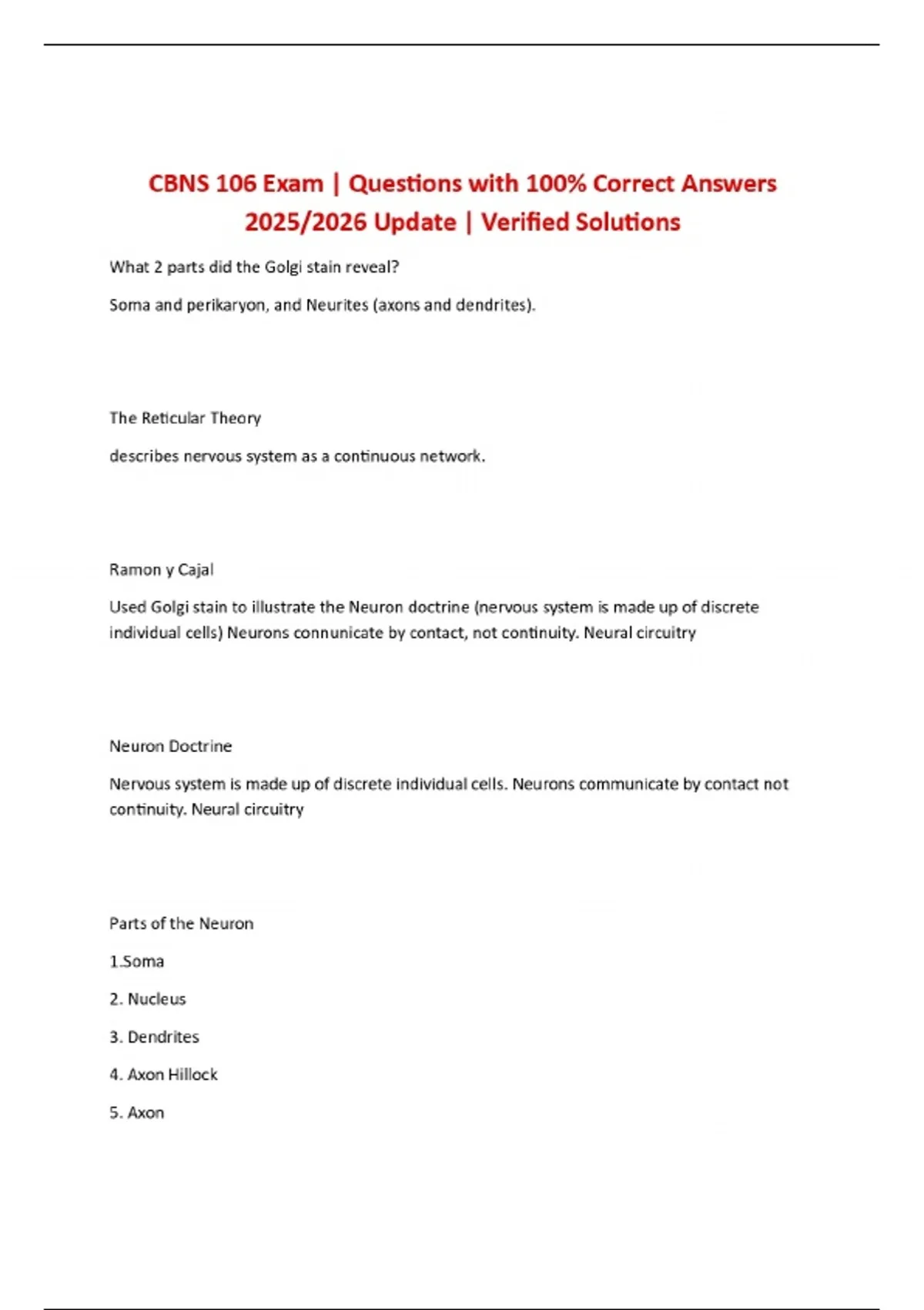CBNS 106 Exam | Questions with 100% Correct Answers 2025/2026 Update | Verified Solutions