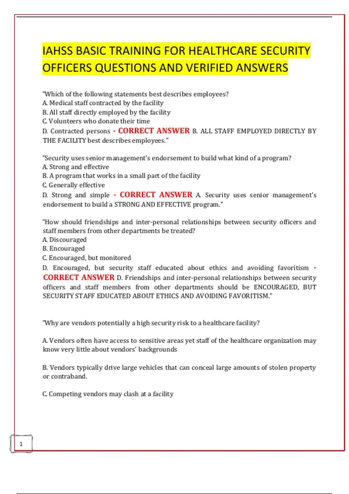 |CORRECT |ANSWER |A. |Vendors |are |potentially |a |high |security |risk |to |a |healthcare