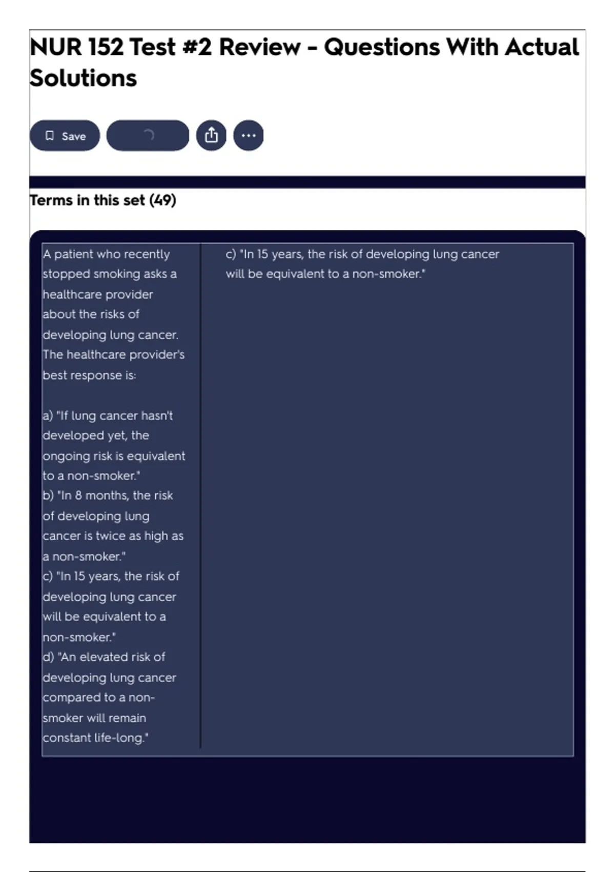 A patient who recently c) "In 15 years, the risk of developing lung cancer