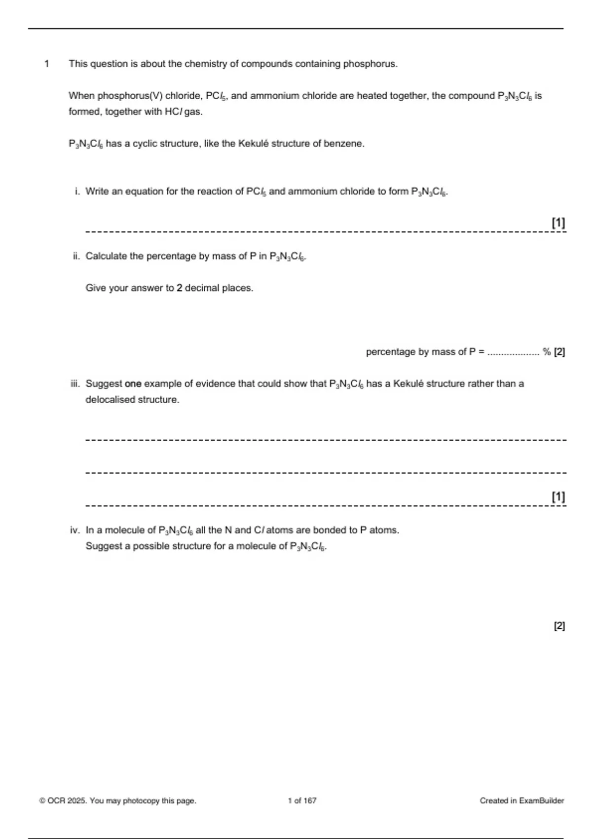 iii. Suggest one example of evidence that could show that P3N3Cl6 has a Kekulé structure rather than a
