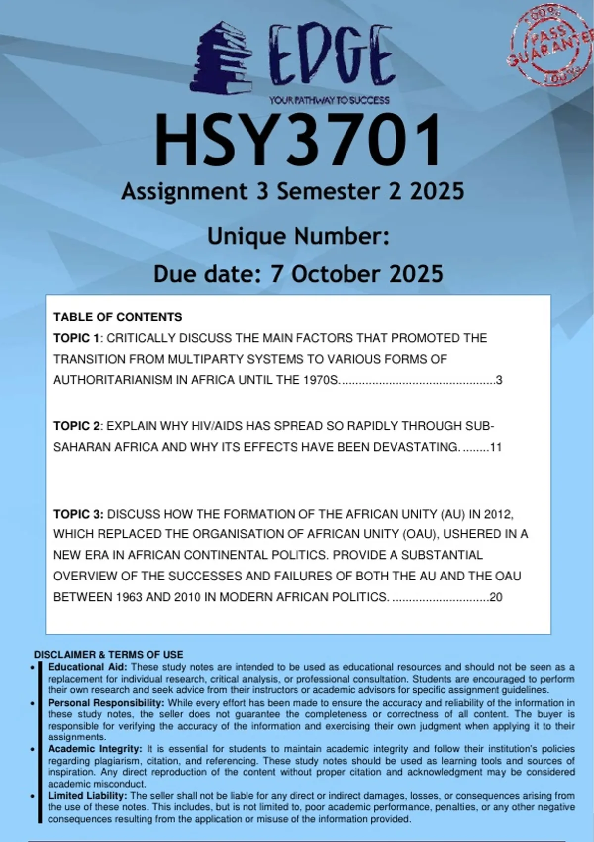 TOPIC 3: DISCUSS HOW THE FORMATION OF THE AFRICAN UNITY (AU) IN