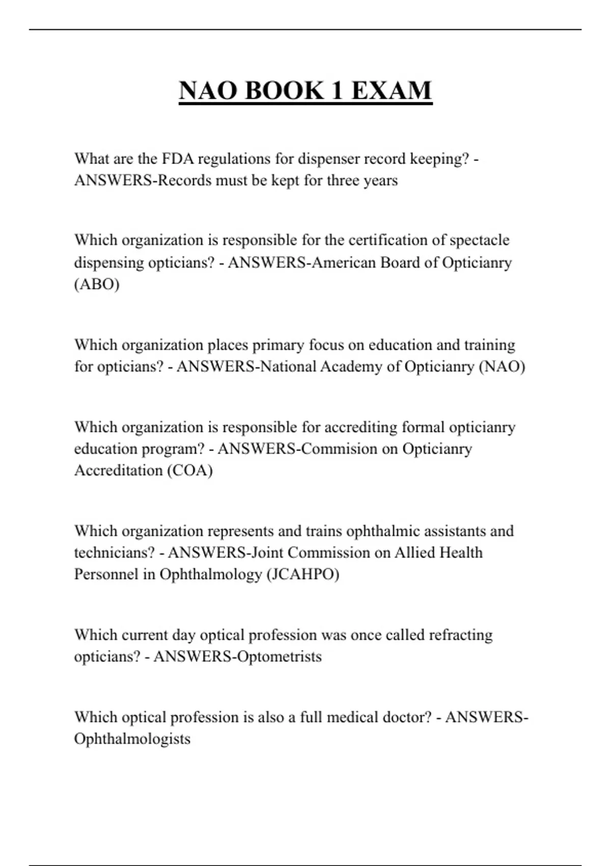 for opticians? - ANSWERS-National Academy of Opticianry (NAO)