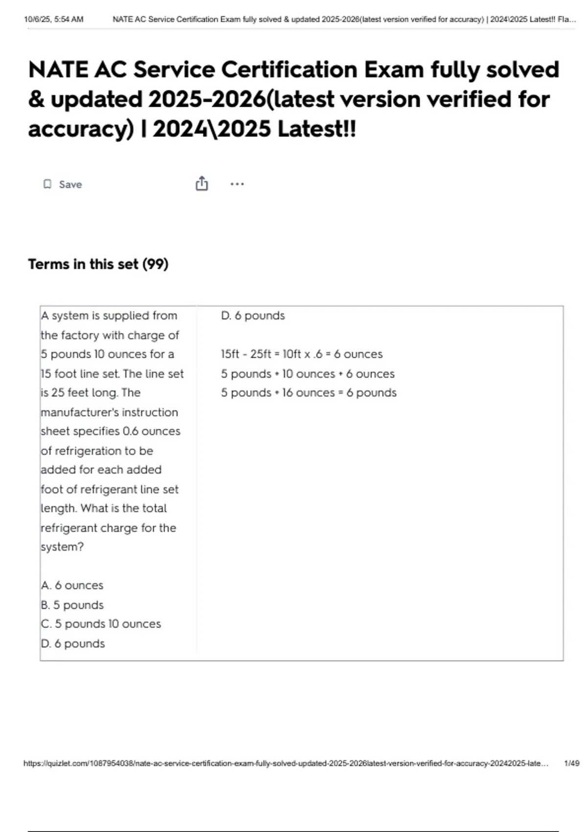 10/6/25, 5:54 AM NATE AC Service Certification Exam fully solved & updated 2025-2026(latest version verified for accuracy) | 2024\2025 Latest!! Fla…