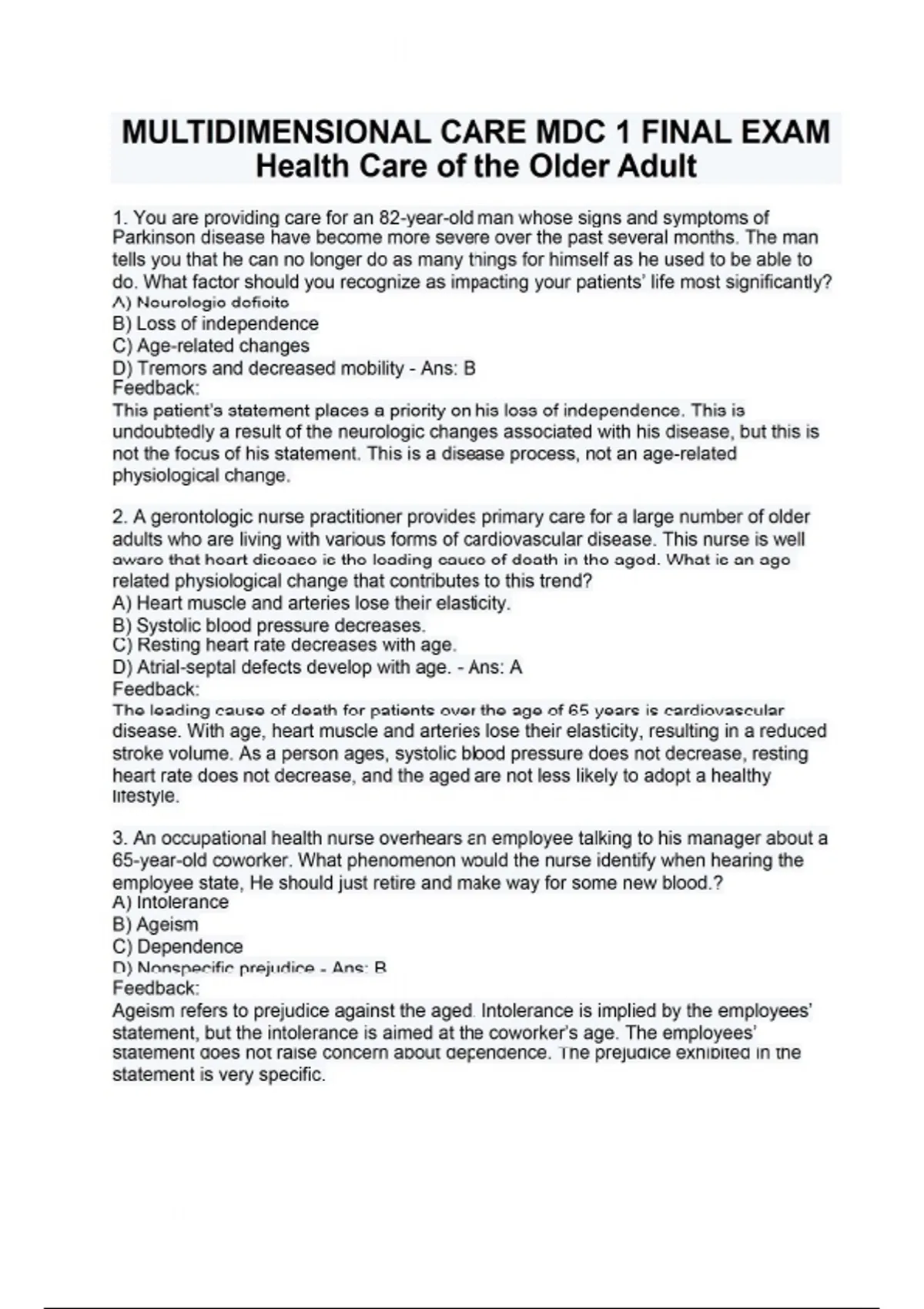 MULTIDIMENSIONAL CARE MDC 1 FINAL EXAM Health Care of the Older Adult
