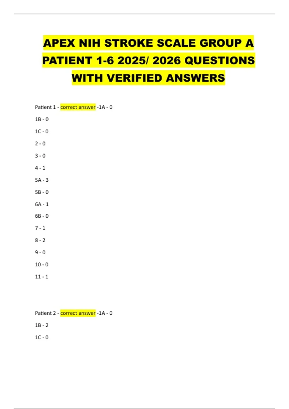 Patient 1 - correct answer -1A - 0