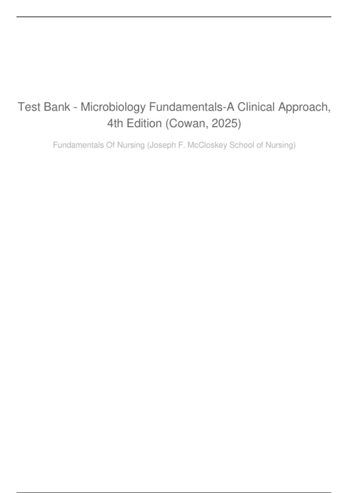 , Test Bank - Microbiology Fundamentals-A Clinical Approach, 4th Edition (Cowan, 2022)