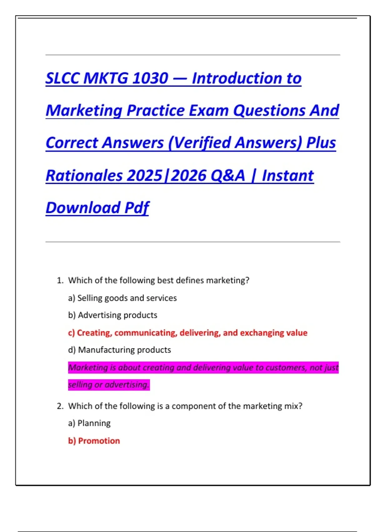 Marketing Practice Exam Questions And