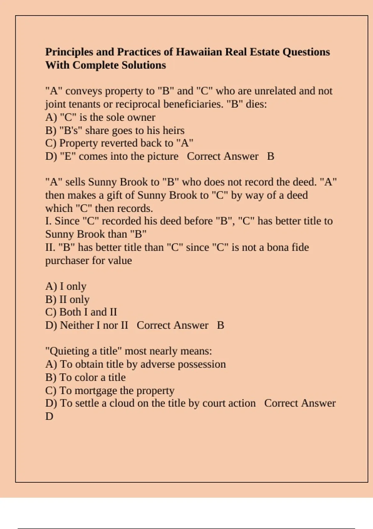 then makes a gift of Sunny Brook to "C" by way of a deed