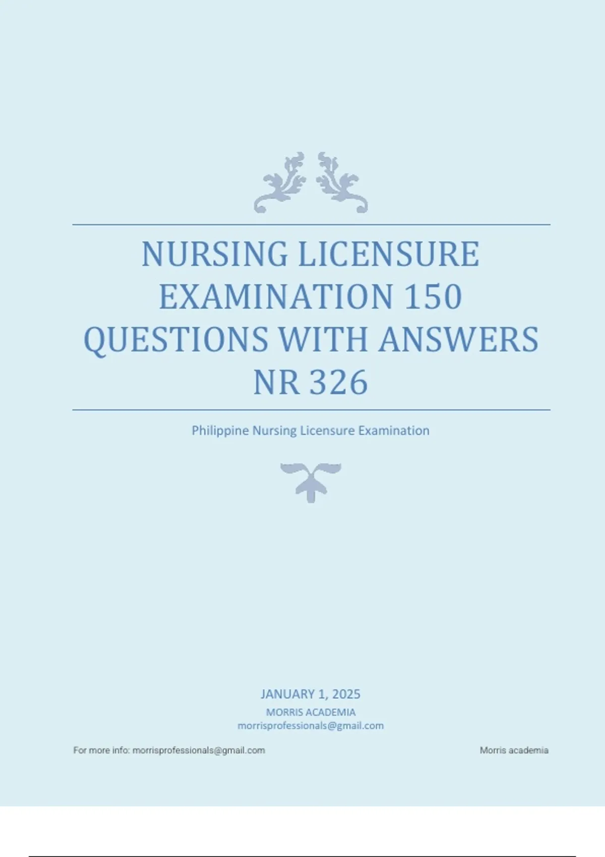 NURSING LICENSURE EXAMINATION 150 QUESTIONS WITH ANSWERS NR 326