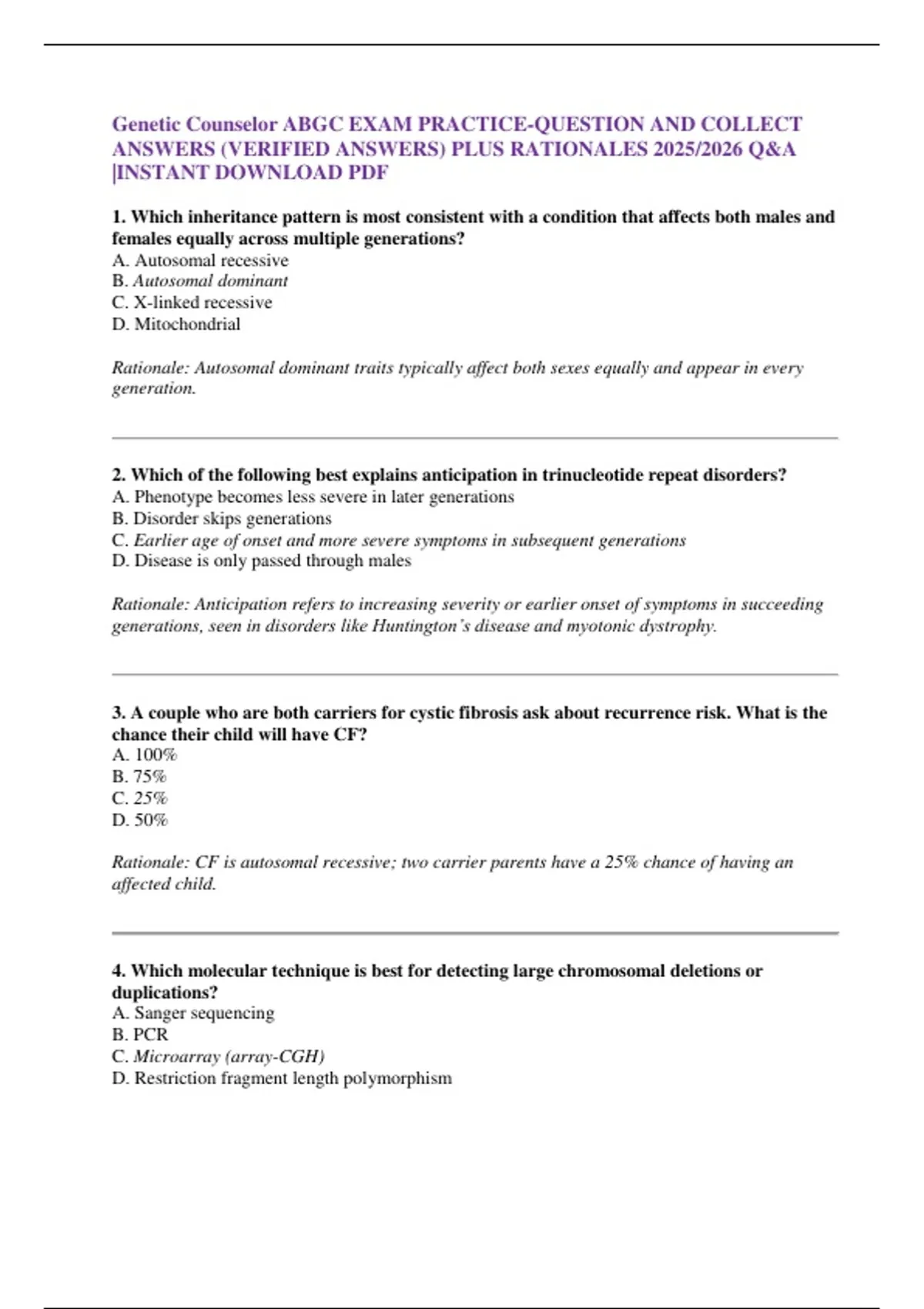1. Which inheritance pattern is most consistent with a condition that affects both males and