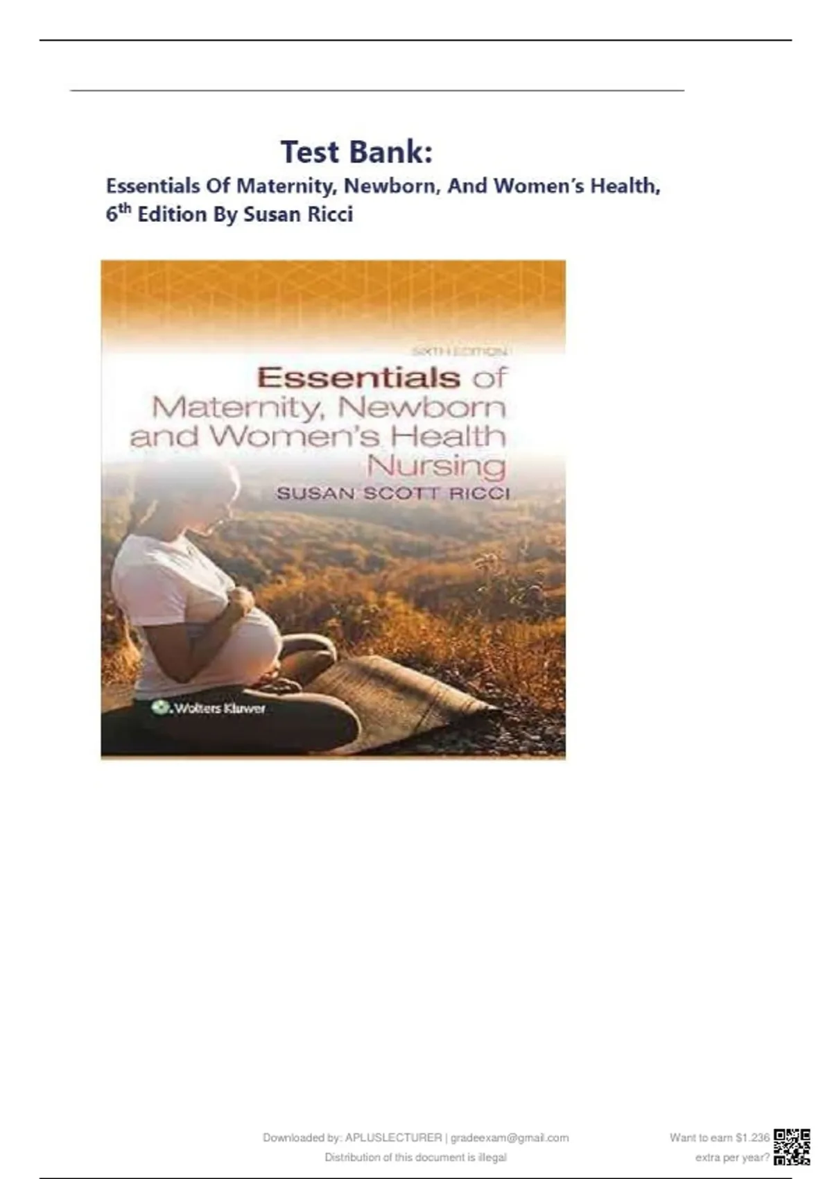 Test Bank: Essentials of Maternity, Newborn, and Women’s Health, 6th Edition by Susan Ricci - All Chapters and Rationals Included