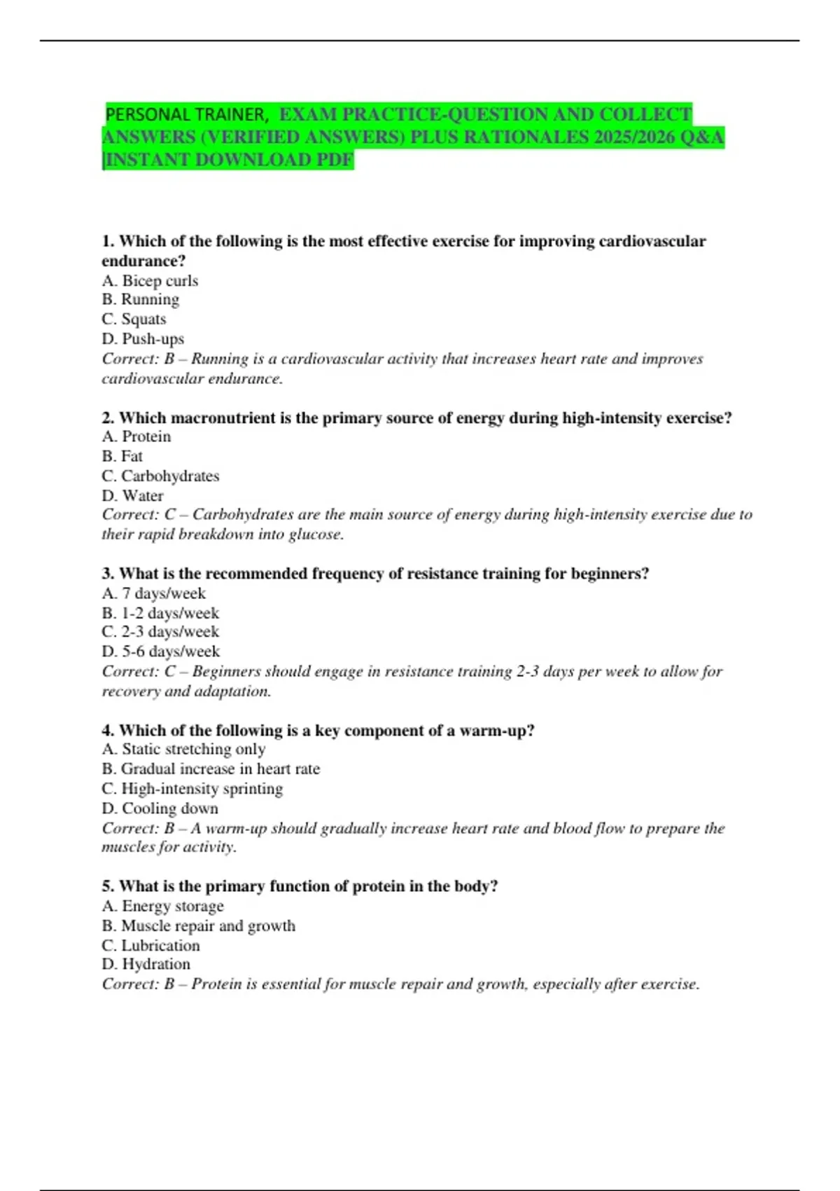 Correct: B – Protein is essential for muscle repair and growth, especially after exercise.