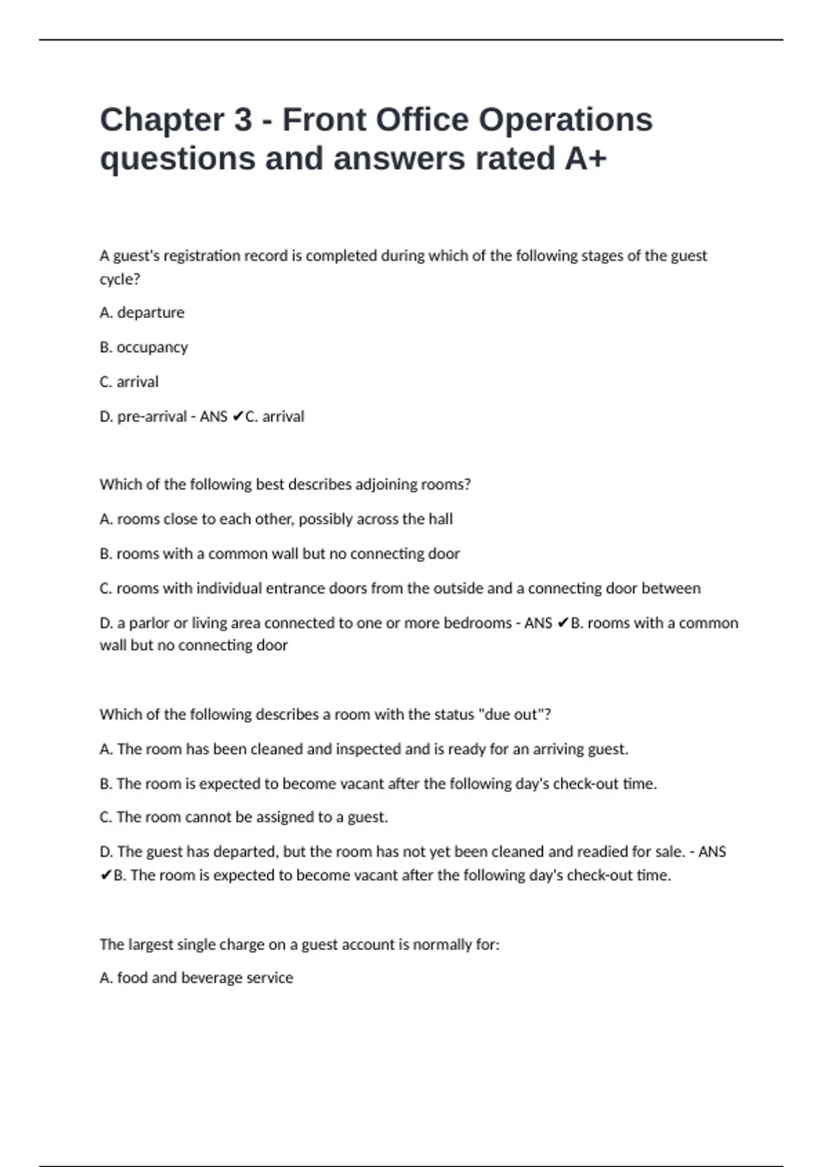 Chapter 3 - Front Office Operations questions and answers rated A+