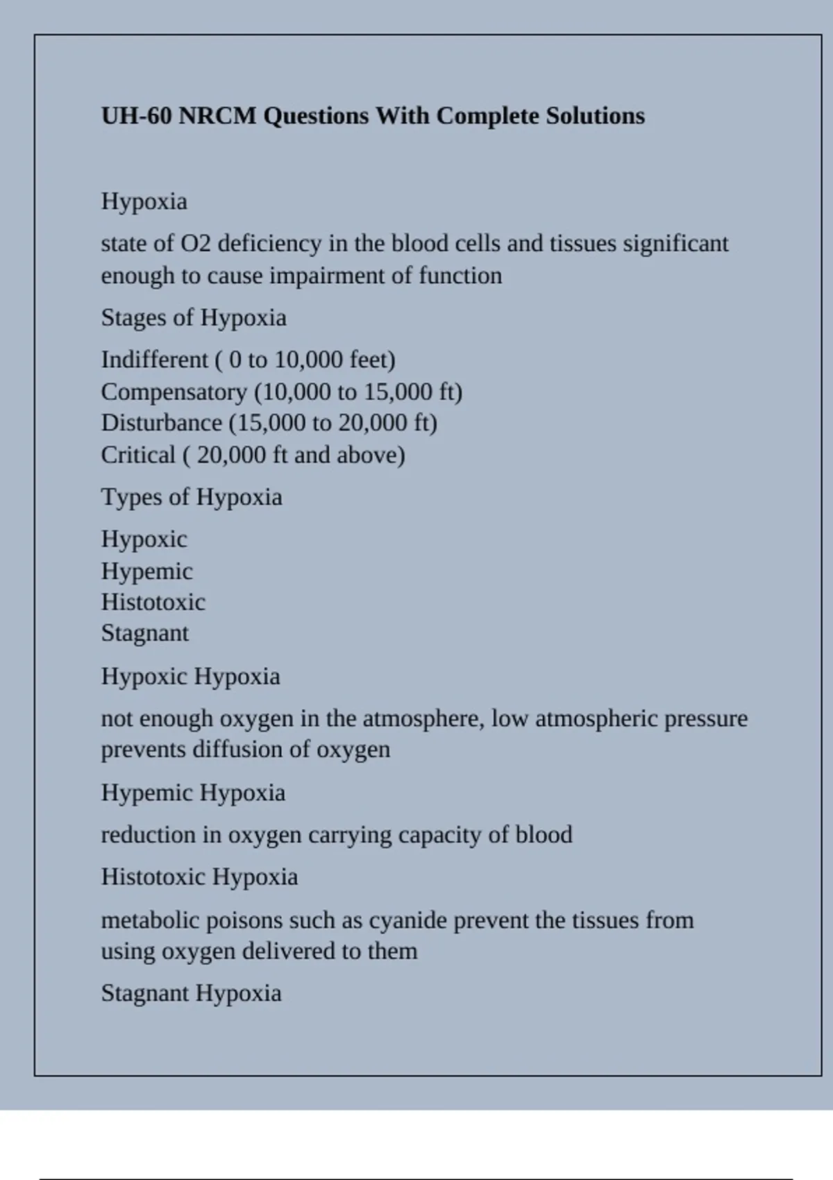 UH-60 NRCM Questions With Complete Solutions