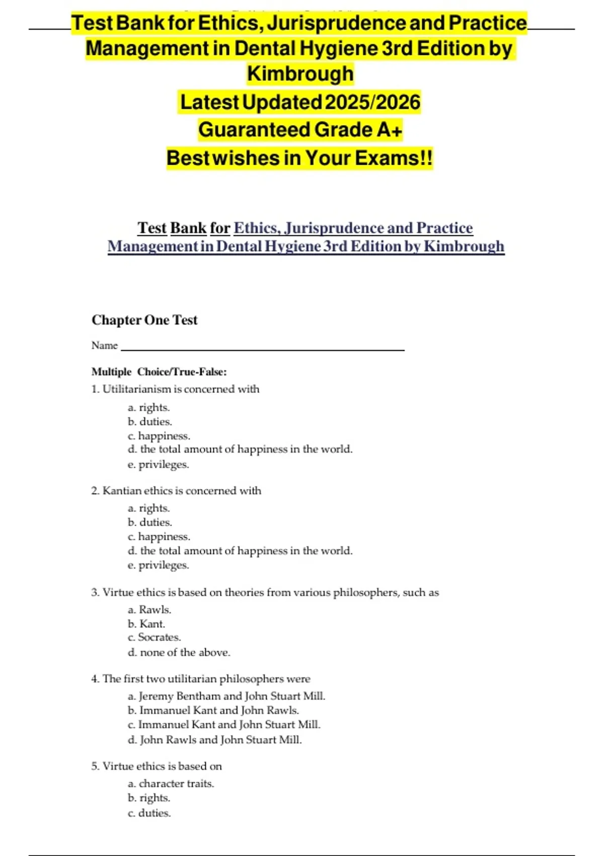 Test Bank for Ethics, Jurisprudence and Practice