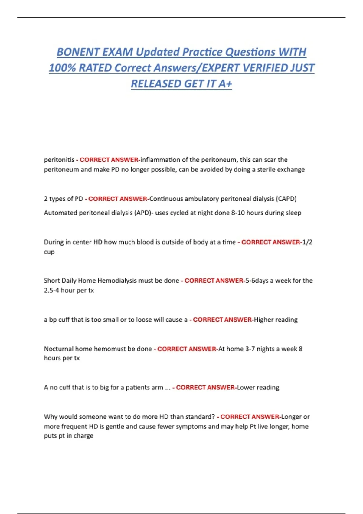 BONENT Exam, administered by the Board of Nephrology Examiners Nursing and Technology, certifies dialysis professionals in hemodialysis and nephrology care. It evaluates knowledge in patient assessment, dialysis principles, water treatment systems, equipment maintenance, and safety procedures. Earning BONENT certification demonstrates professional competency, adherence to industry standards, and commitment to quality renal care. Preparation through study guides, review courses, and practice exams ensures confidence and readiness for success.