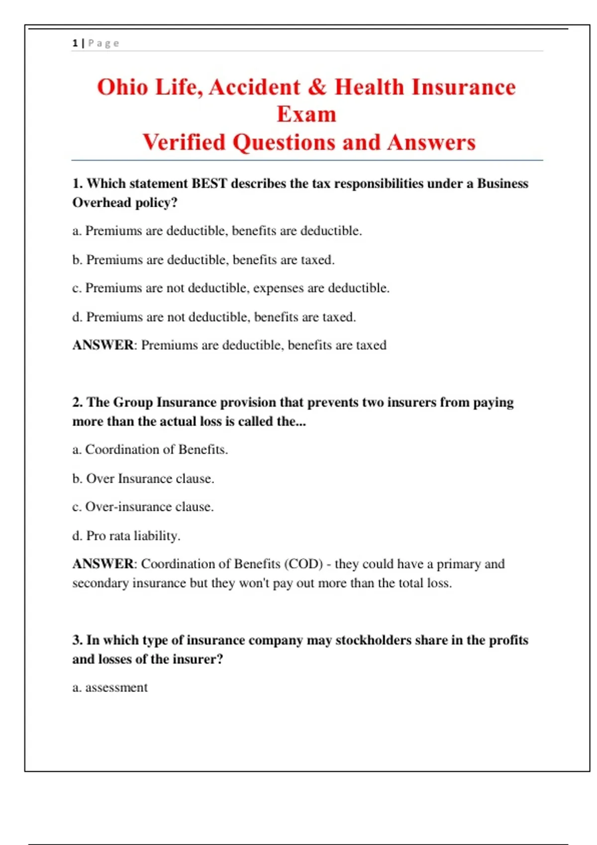ANSWER: Premiums are deductible, benefits are taxed