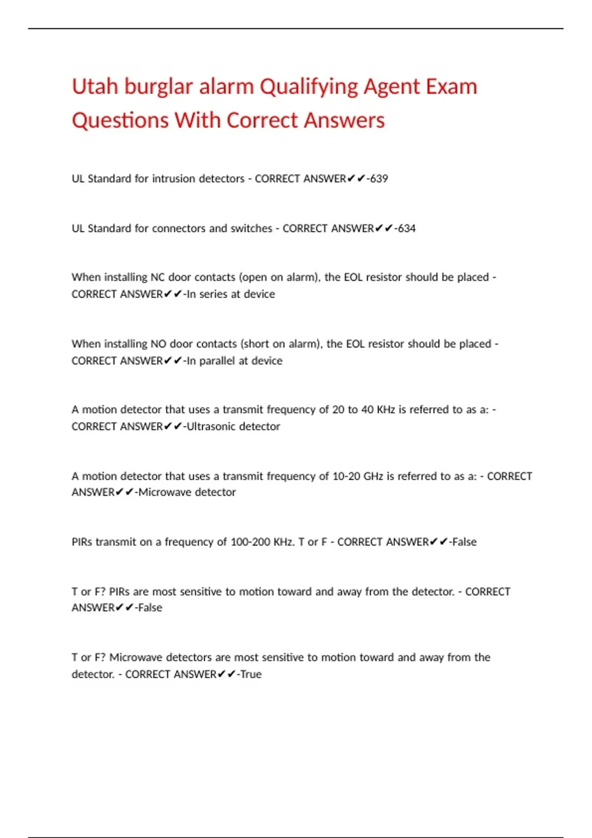 Utah burglar alarm Qualifying Agent Exam Questions With Correct Answers