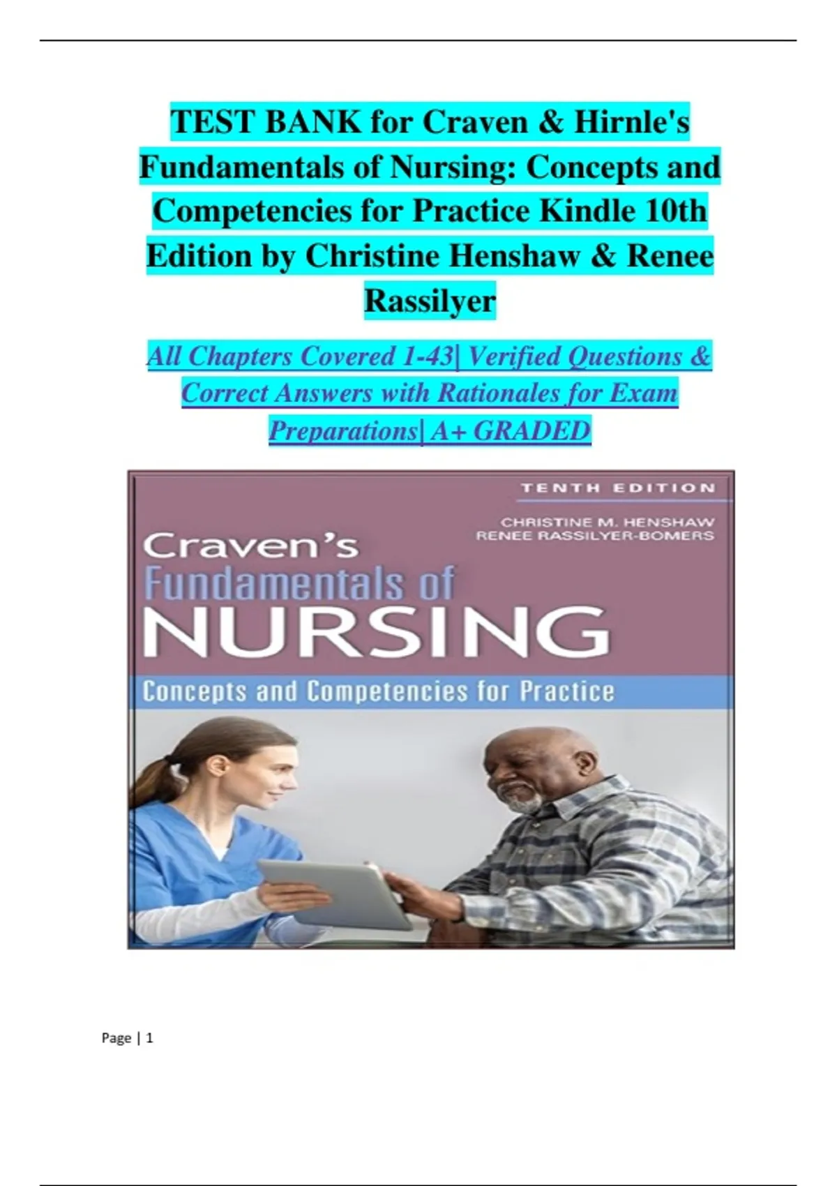 TEST BANK For Craven & Hirnle's Fundamentals of Nursing: Concepts and Competencies for Practice, 10th Edition by Christine Henshaw, Renee Rassilyer, Verified Chapters 1 - 43, Complete Newest Version