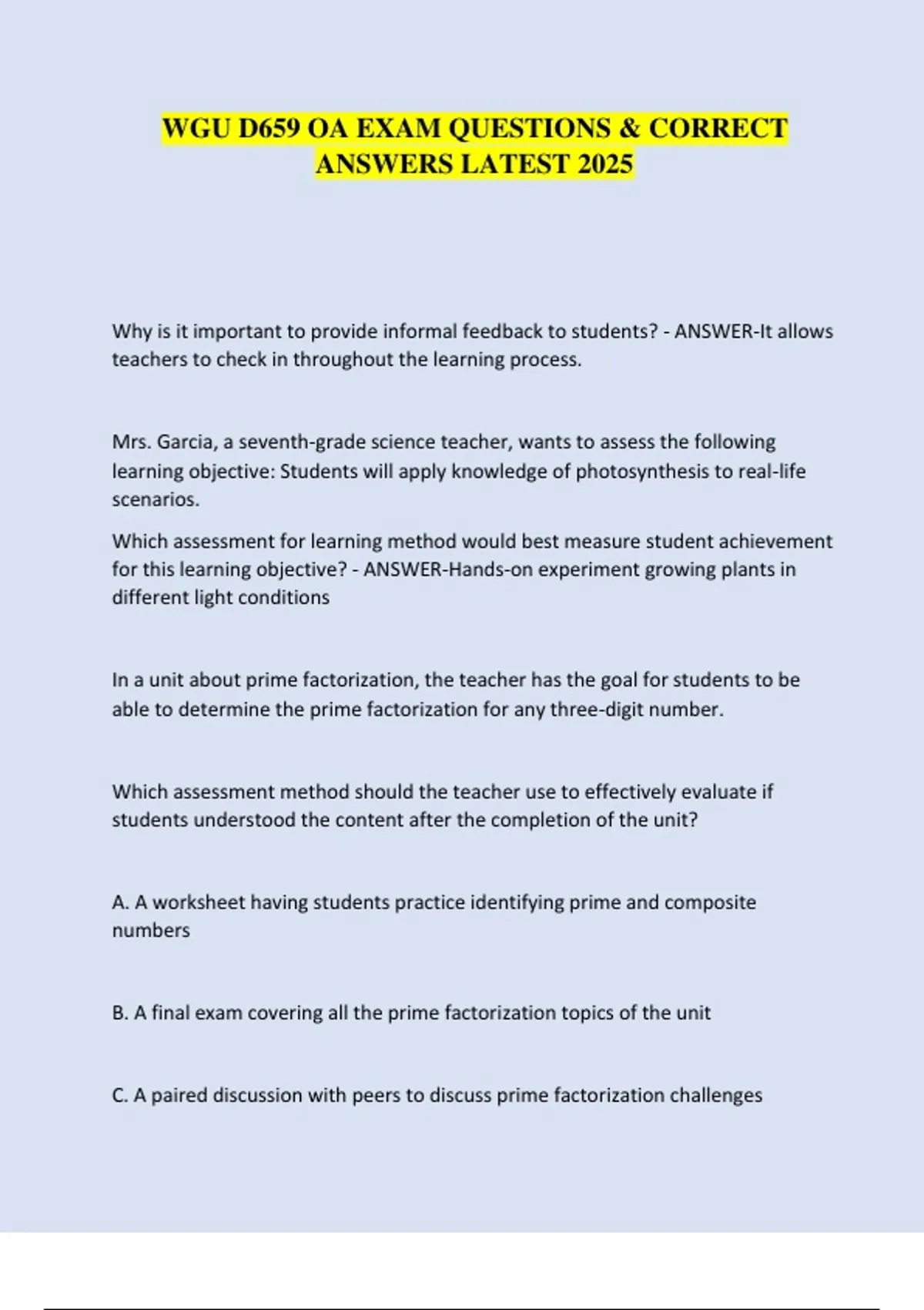 WGU D659 OA EXAM QUESTIONS & CORRECT