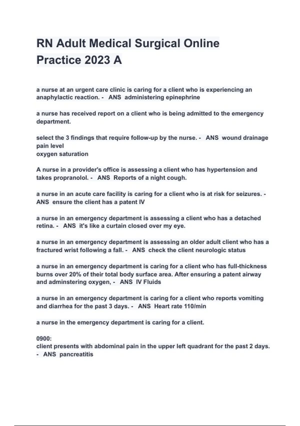 a nurse in the emergency department is caring for a client.