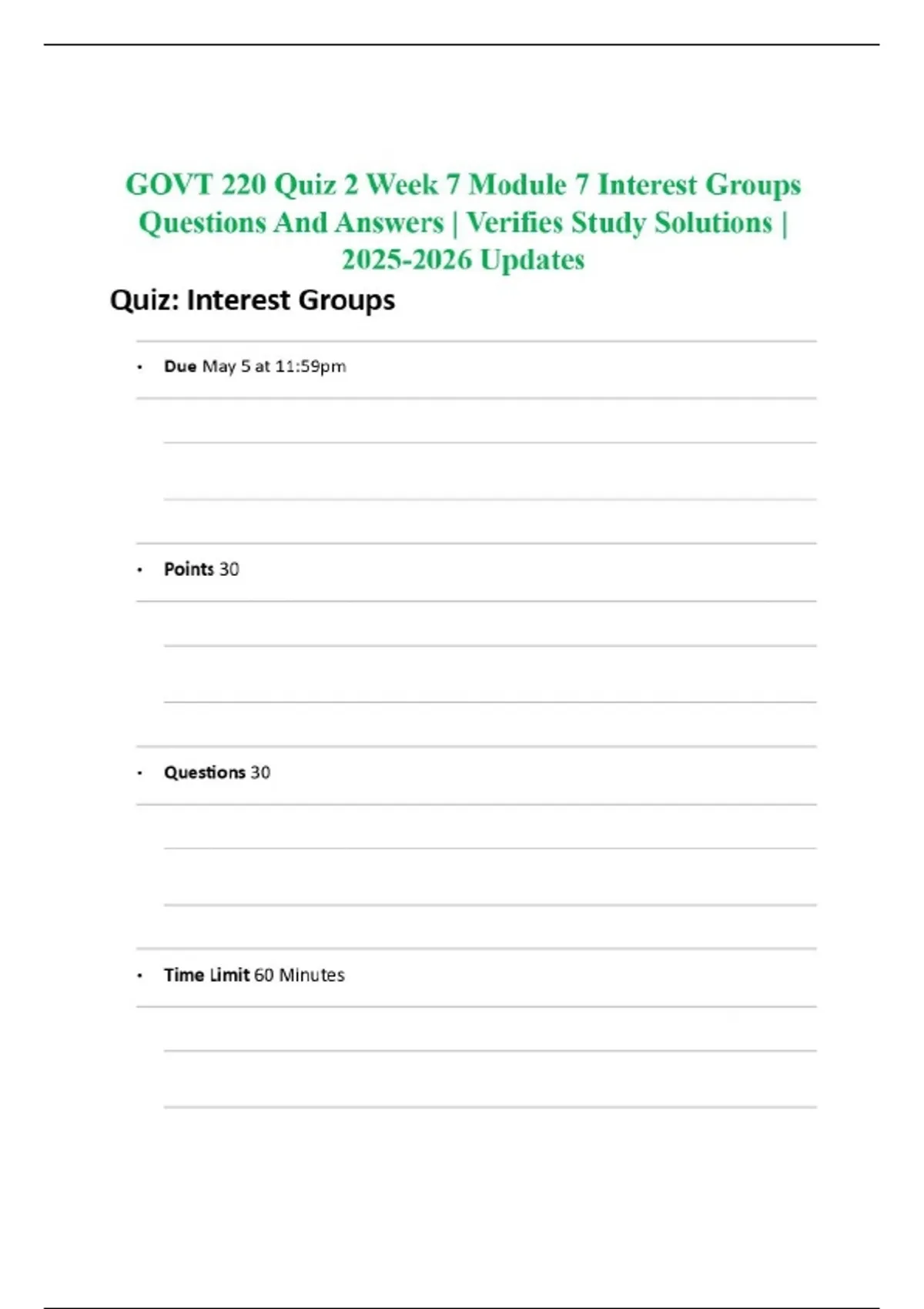 GOVT 220 Quiz 2 Week 7 Module 7 Interest Groups Questions And Answers | Verifies Study Solutions | Updates