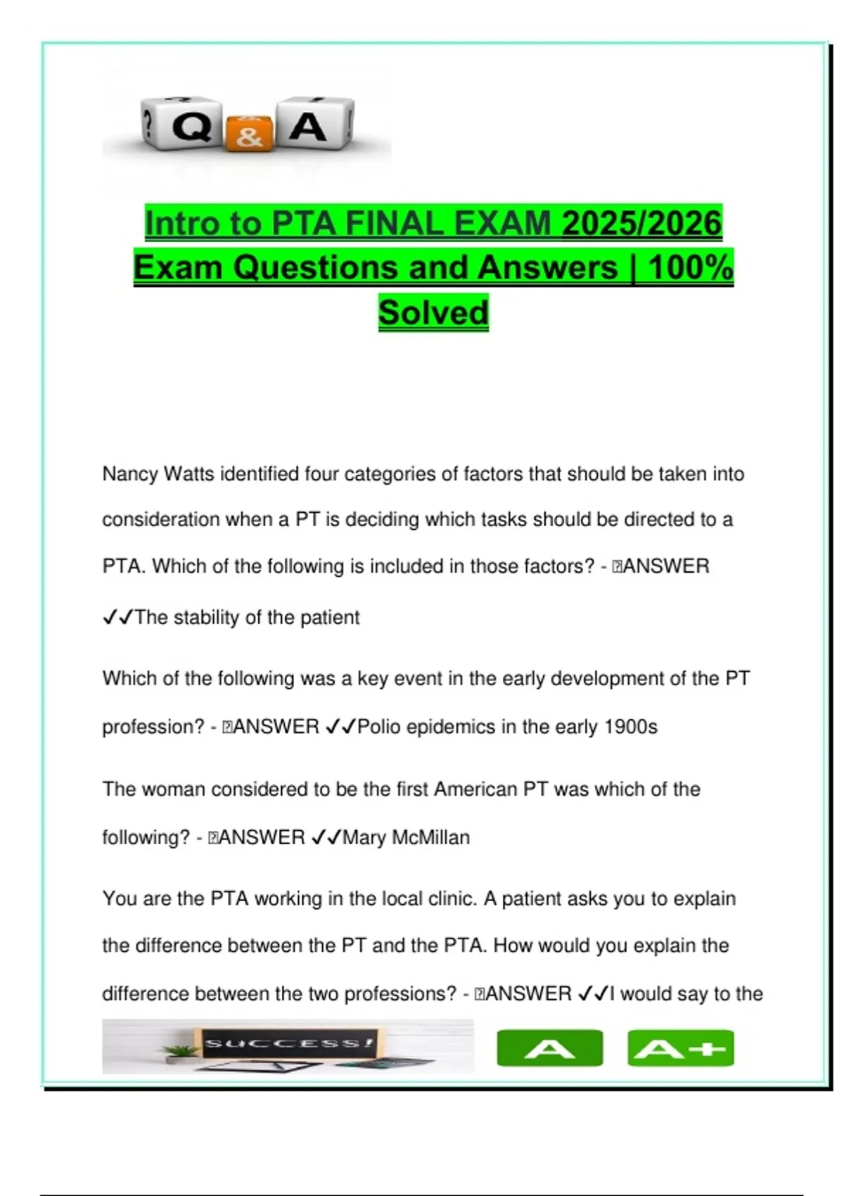 PTA. Which of the following is included in those factors? - 🧠ANSWER
