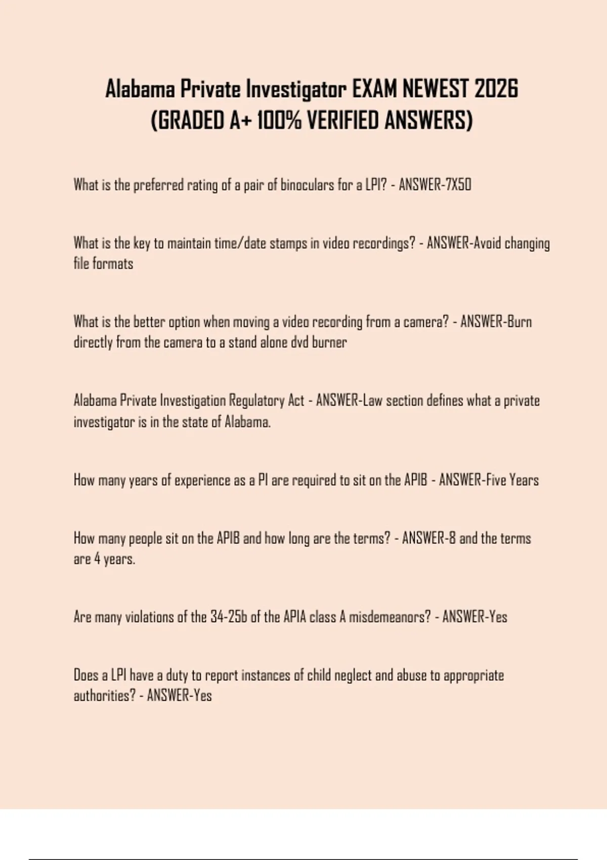 APIB is an acronym for Alabama Private Investigations Board (T/F) - ANSWER-T