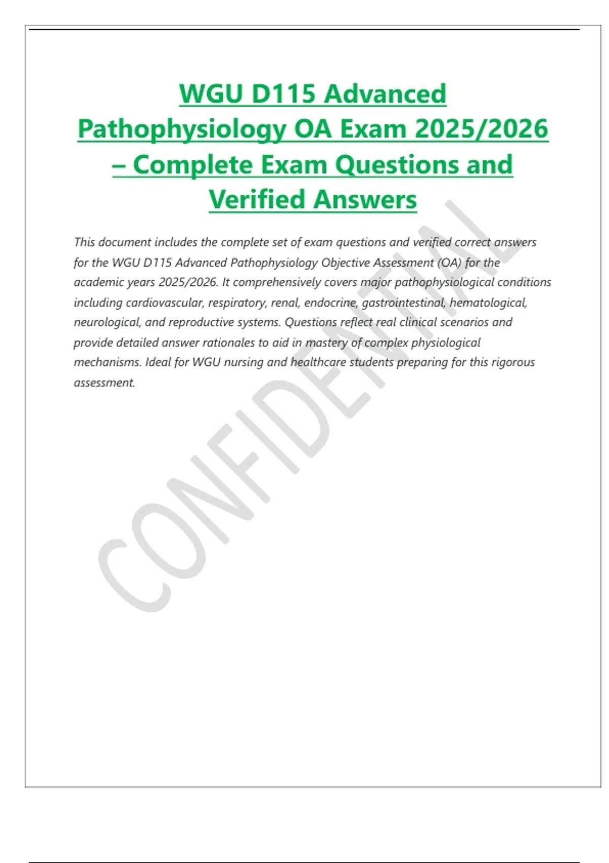 for the WGU D115 Advanced Pathophysiology Objective Assessment (OA) for the