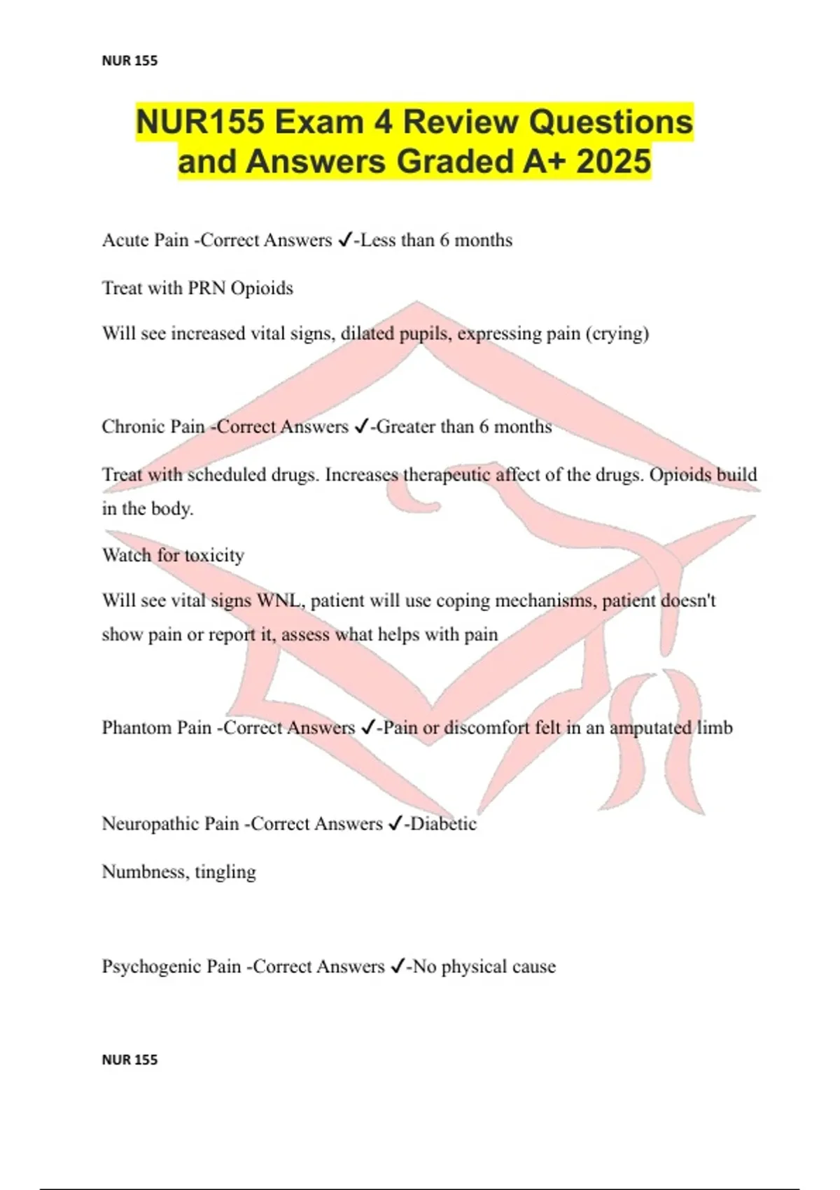 NUR155 Exam 4 Review Questions and Answers Graded A+ 2025