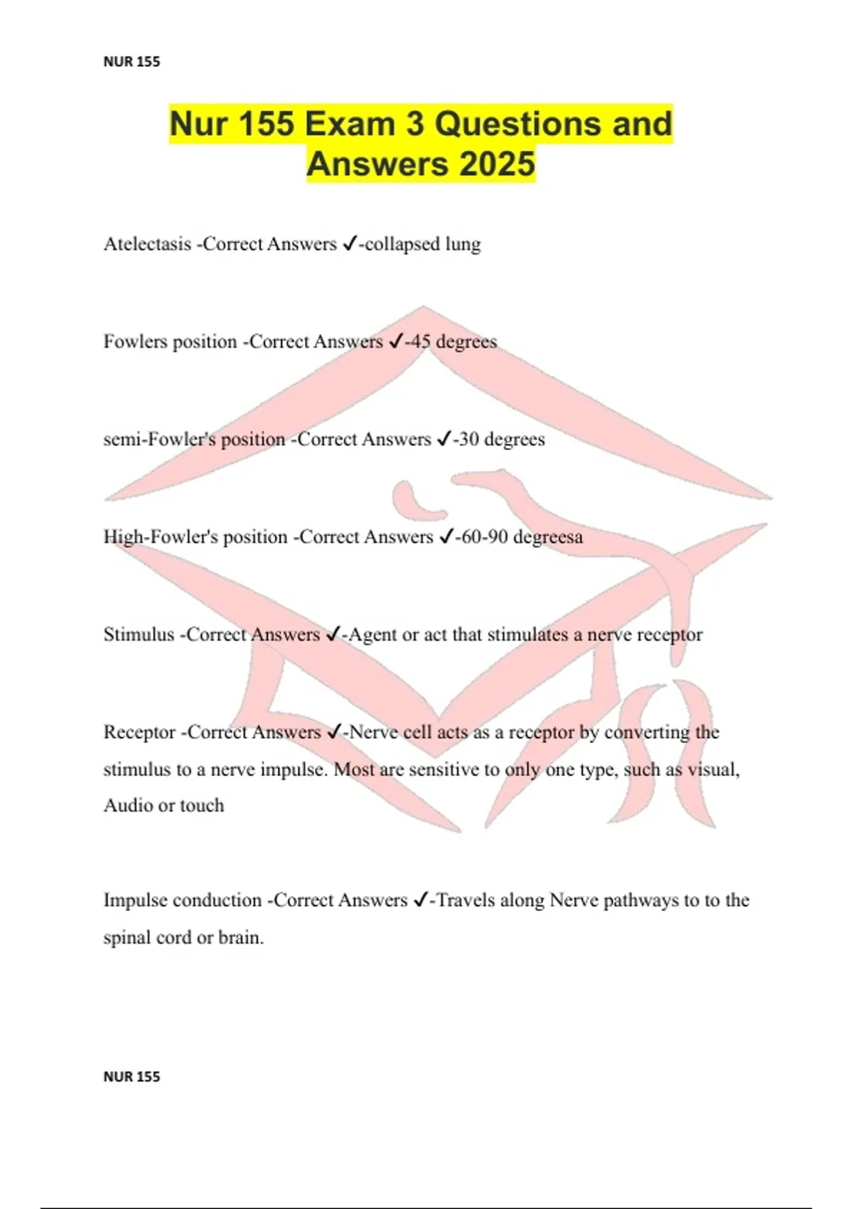 Nur 155 Exam 3 Questions and Answers 2025