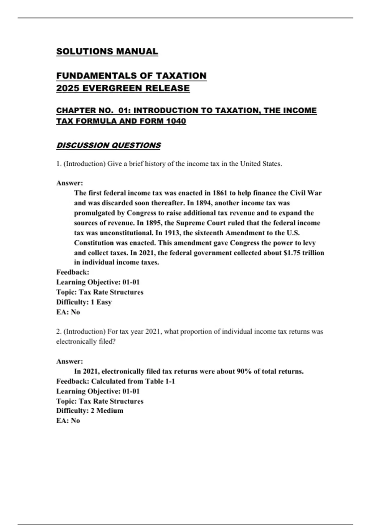 1. (Introduction) Give a brief history of the income tax in the United States.