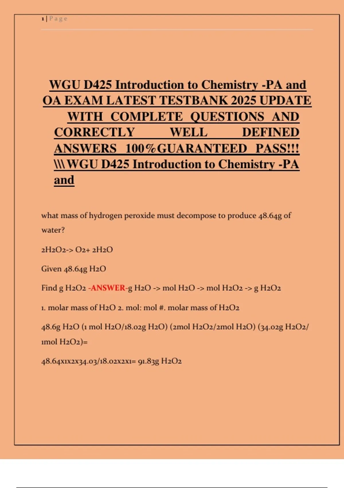 what mass of hydrogen peroxide must decompose to produce 48.64g of