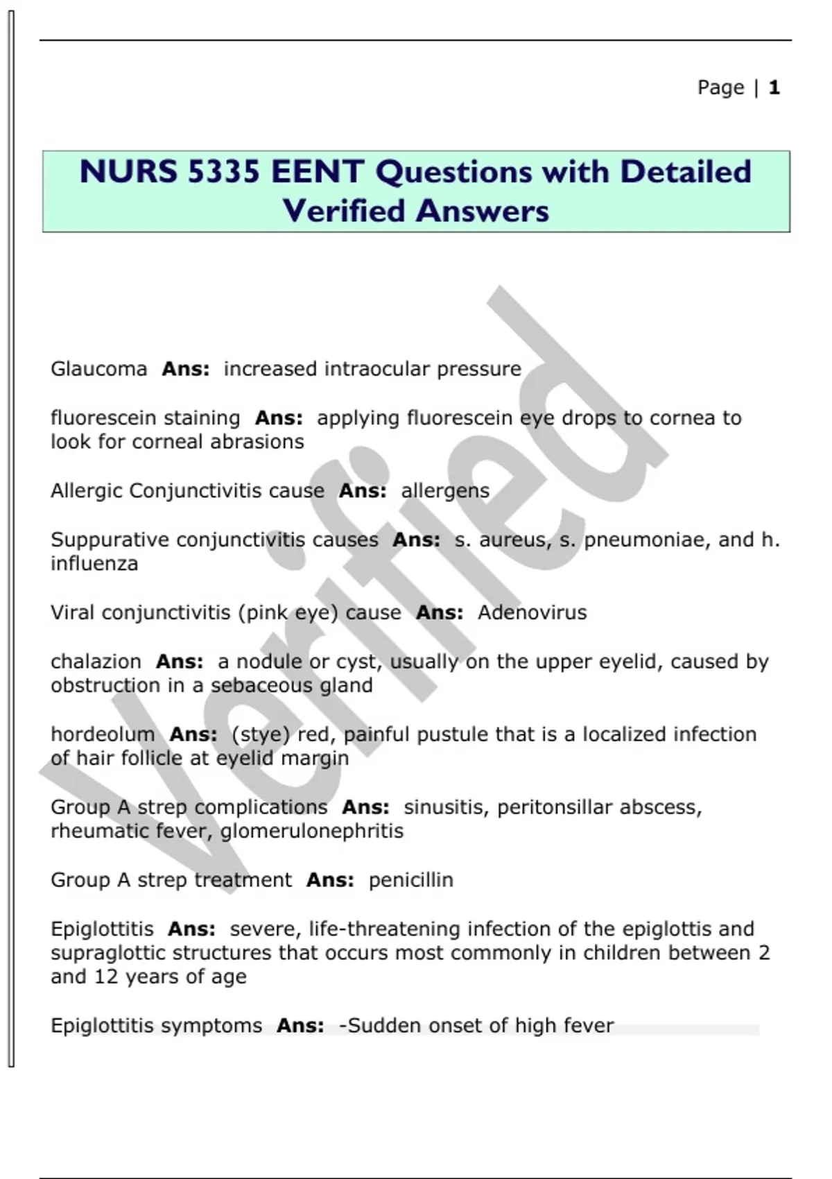NURS 5335 EENT Questions with Detailed Verified Answers