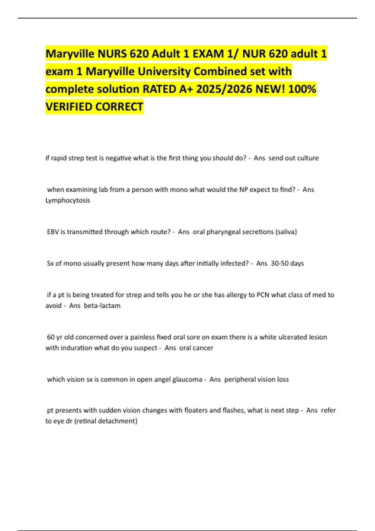 Maryville NURS 620 Adult 1 EXAM 1/ NUR 620 adult 1 exam 1 Maryville University Combined set with complete solution RATED A+ 2025/2026 NEW! 100% VERIFIED CORRECT Maryville NURS 620 Adult 1 EXAM 1/ NUR 620 adult 1 exam 1 Maryville University Combined set with complete solution RATED A+ 2025/2026 NEW! 100% VERIFIED CORRECT Maryville NURS 620 Adult 1 EXAM 1/ NUR 620 adult 1 exam 1 Maryville University Combined set with complete solution RATED A+ 2025/2026 NEW! 100% VERIFIED CORRECT Maryville NURS 620 Adult 1 EXAM 1/ NUR 620 adult 1 exam 1 Maryville University Combined set with complete solution RATED A+ 2025/2026 NEW! 100% VERIFIED CORRECT Maryville NURS 620 Adult 1 EXAM 1/ NUR 620 adult 1 exam 1 Maryville University Combined set with complete solution RATED A+ 2025/2026 NEW! 100% VERIFIED CORRECT Maryville NURS 620 Adult 1 EXAM 1/ NUR 620 adult 1 exam 1 Maryville University Combined set with complete solution RATED A+ 2025/2026 NEW! 100% VERIFIED CORRECT Maryville NURS 620 Adult 1 EXAM 1/ NUR 620 adult 1 exam 1 Maryville University Combined set with complete solution RATED A+ 2025/2026 NEW! 100% VERIFIED CORRECT