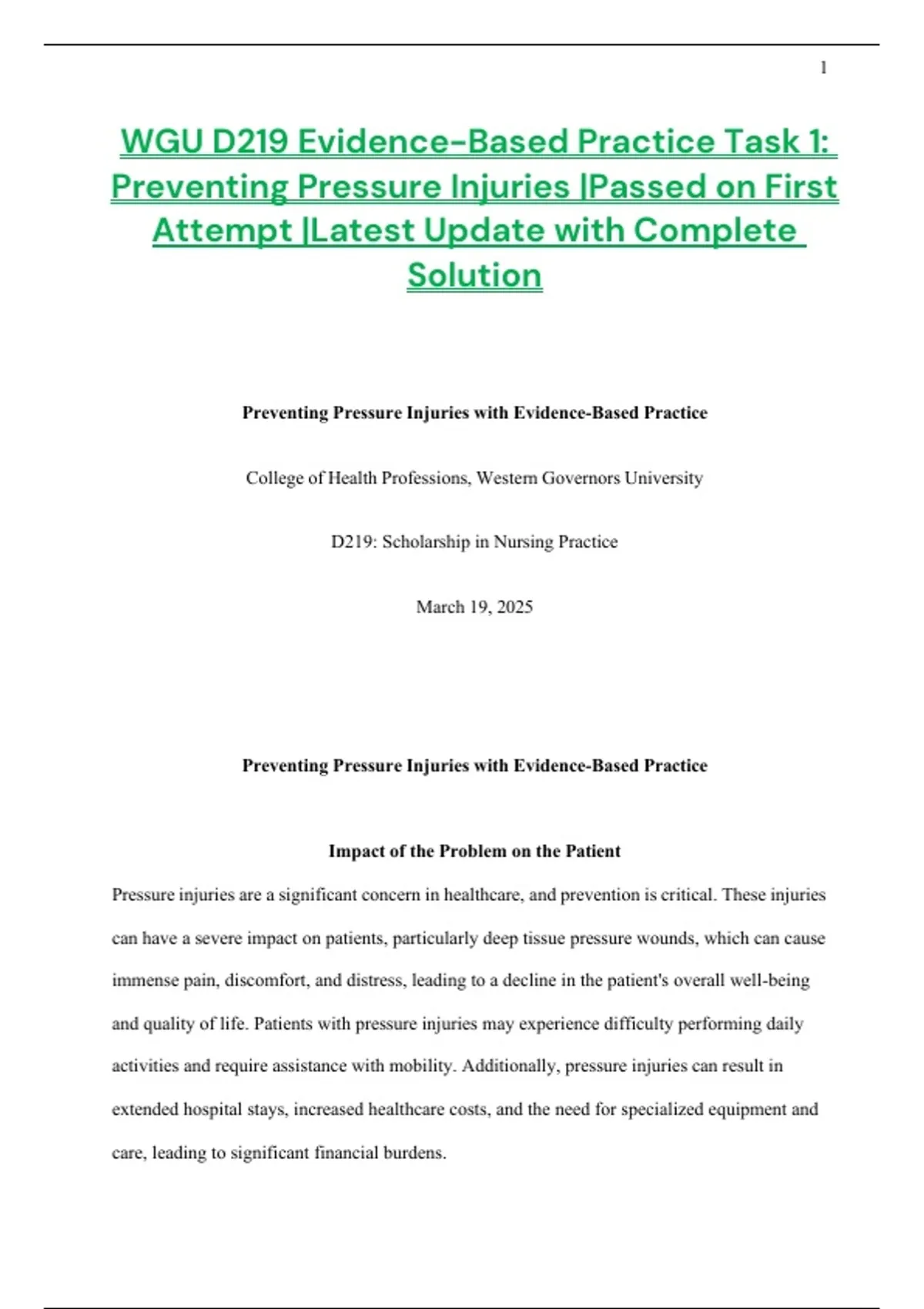 WGU D219 Evidence-Based Practice Task 1: