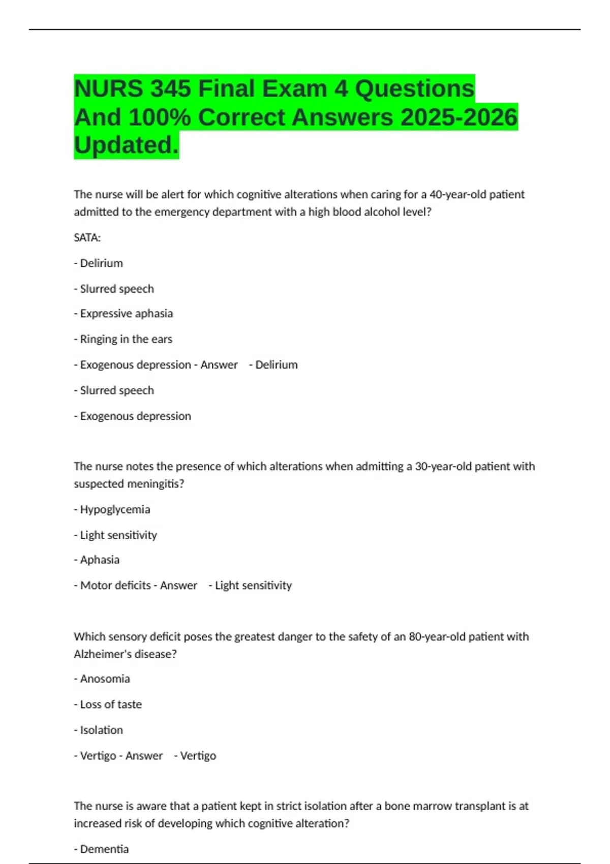 - Exogenous depression - Answer - Delirium