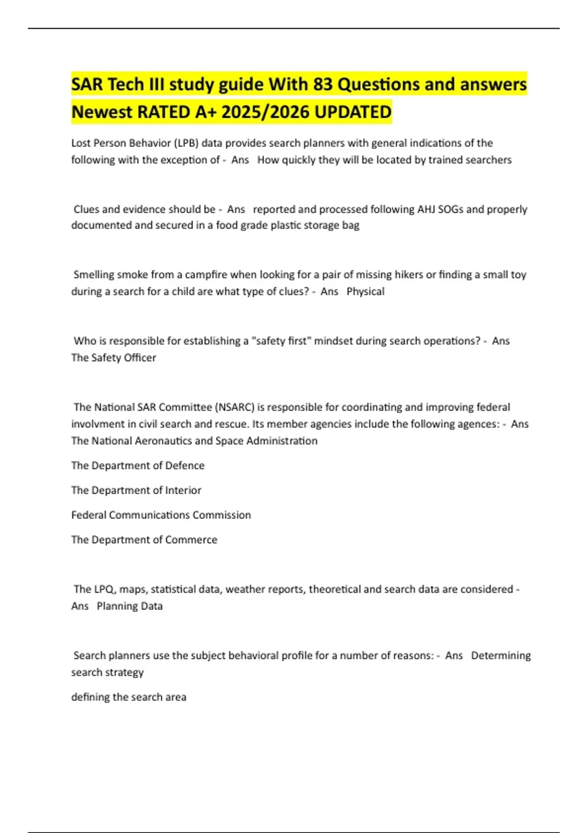 following with the excep on of - Ans How quickly they will be located by trained searchers