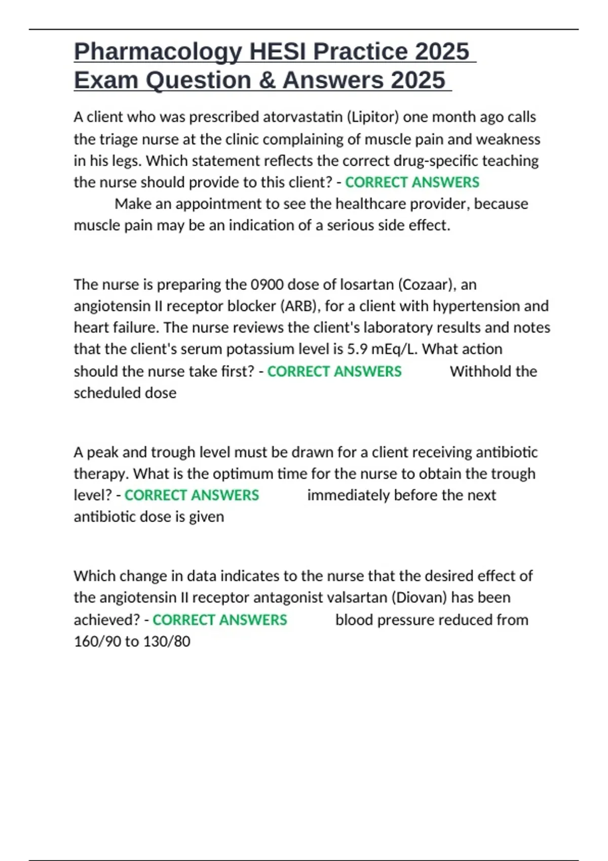 Pharmacology HESI Practice 2025 Exam Question & Answers 2025.docx