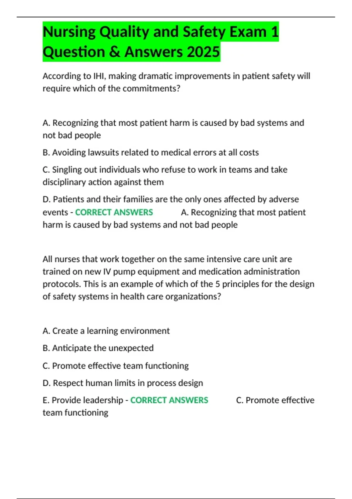 Nursing Quality and Safety Exam 1 question & Answers 2025.docx